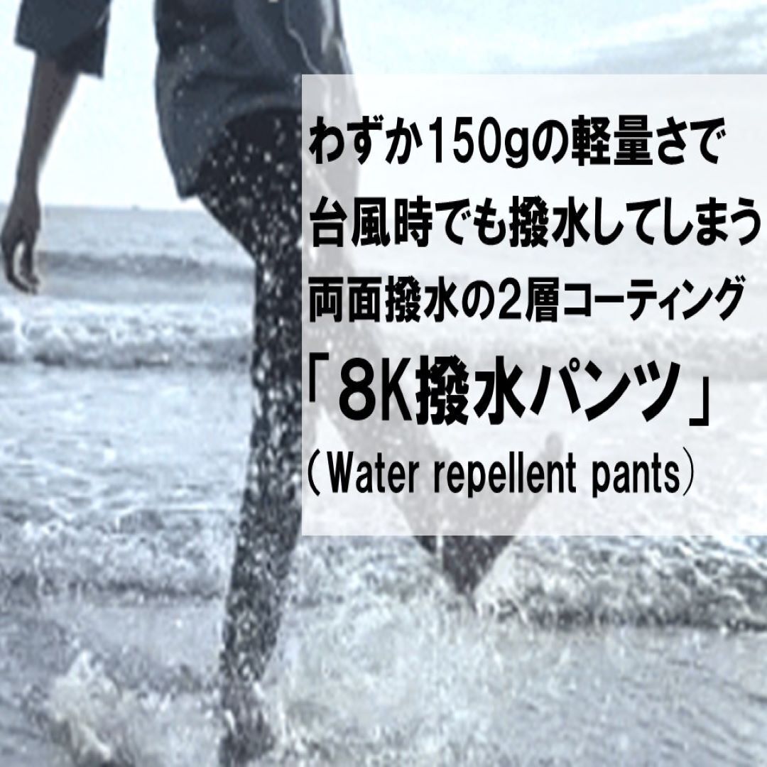 「8K撥水パンツ」は生地が2層コーティングになっており、普通の撥水生地に比べて水を弾く力を長く保持することができます。(使用を長く繰り返した場合は撥水力が落ちてしまいます。)