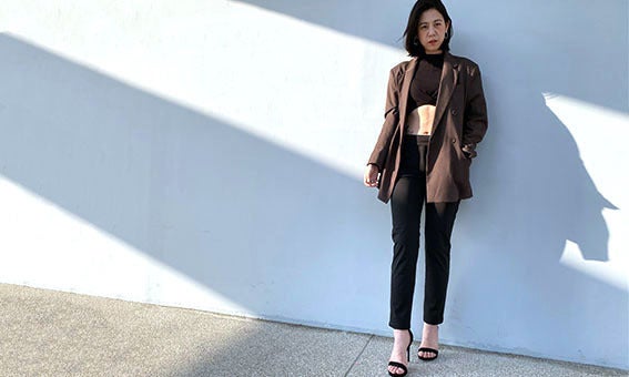 女の子モデル165cmはブラック1(XS_S)号を着用しています。