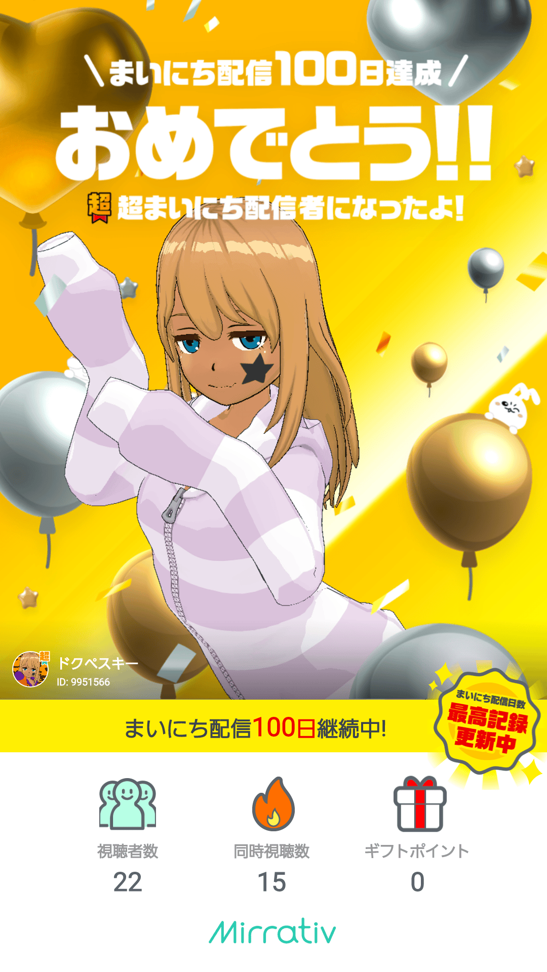そしてついにゲーム配信が100日達成できました!