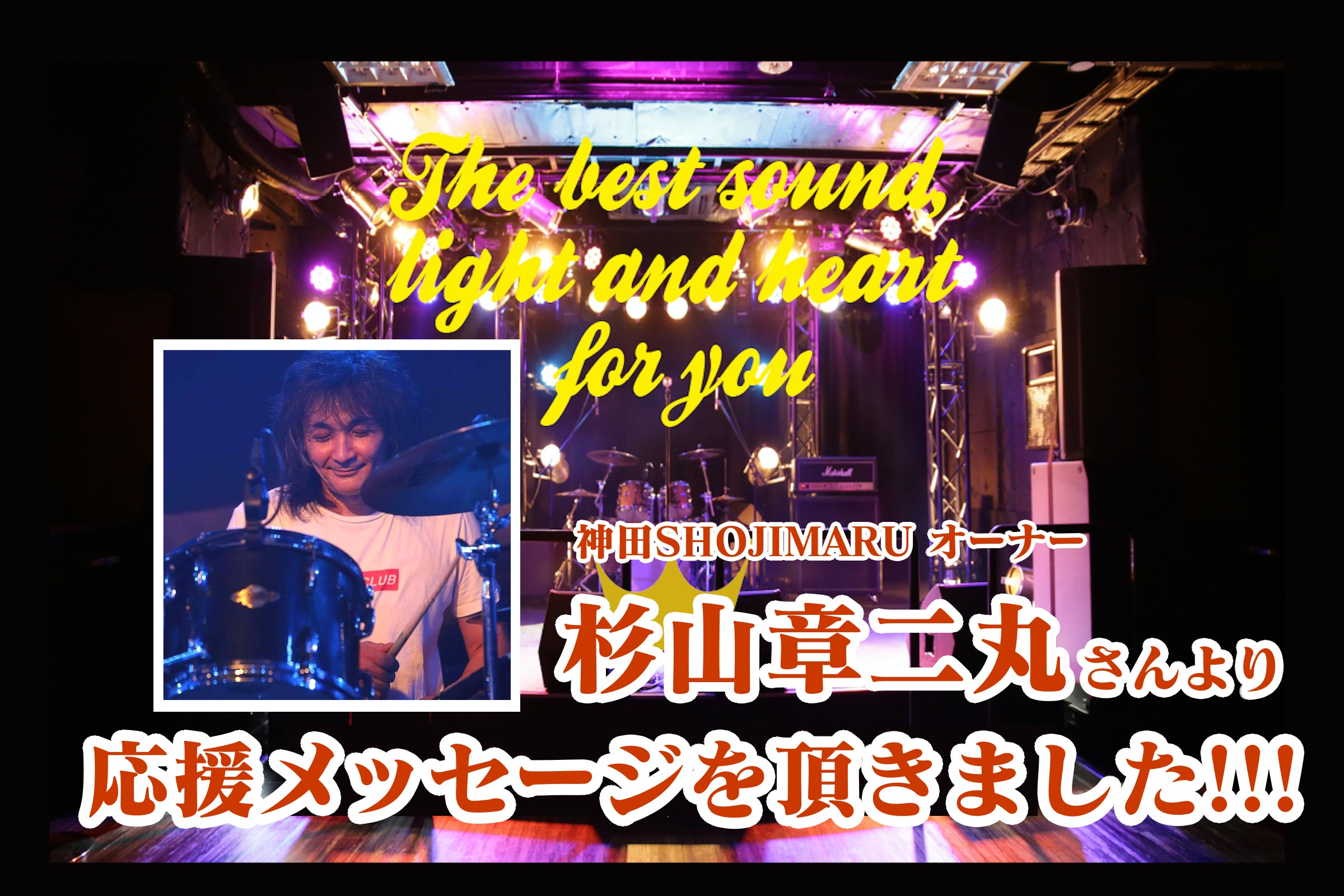 今回のプロジェクトに際して、アーティストとしては、還暦記念ライブや、YouTubeの特別対談等、御出演頂き、ライブハウスの先輩としては、配信業務やクラウドファンディングにいち早く注目し、コロナ禍においても前向きに戦い抜くライブハウス像を見せていただいた、同じ東東京エリアのライブハウス、神田SHOJIMARUのオーナー、杉山章二丸さんより、応援メッセージを頂きました!以下、章二丸さんからのメッセージです。神田SHOJIMARUのオーナー 杉山章二丸さん『東東京を代表する規模のライブハウス 浅草GOLDSOUNDS』コロナ渦でバッタバッタと閉店が相次ぐライブハウス業界、我が店神田SHOJIMARUも6月にクラウドファンディングさせて頂きなんとか年を越せそうです。これから来年はどうなるのか?と不安はありますが、不安がらない!前しか向かない!そう決めてます!そんな最中、GoldSounds店長シュウさんが奮起し、新オーナーになると!!なんて前向きなんだ!!スタッフと共に超ポジティブに前を向くんだ!と、このライブシーンを取り戻す、また新たな展開を試み、挑戦していく姿にわたくしは深く感銘を受けております!!攻めは最大の防御なり!東東京を代表するライブハウス浅草GoldSoundsは、スタッフ1人1人がGoldSoundsを愛してる!オーナーシュウさんを愛してる!それがひしひし伝わる素晴らしいチームです!!チーム皆の結束で、この状況下を乗り越え、これからの存続のために、わたくしも絶大に応援してまいります!!共に東東京を盛り上げるぞ!!神田SHOJIMARUオーナー杉山章二丸-------------------------------------------------------------------------------------------本プロジェクトは、12/19現在、残り11日、達成率58%となっております。達成に向けてお力貸していただける方がいらっしゃいましたら、ご支援、拡散のご協力を何卒、宜しくお願いいたします。Asakusa Gold Sounds