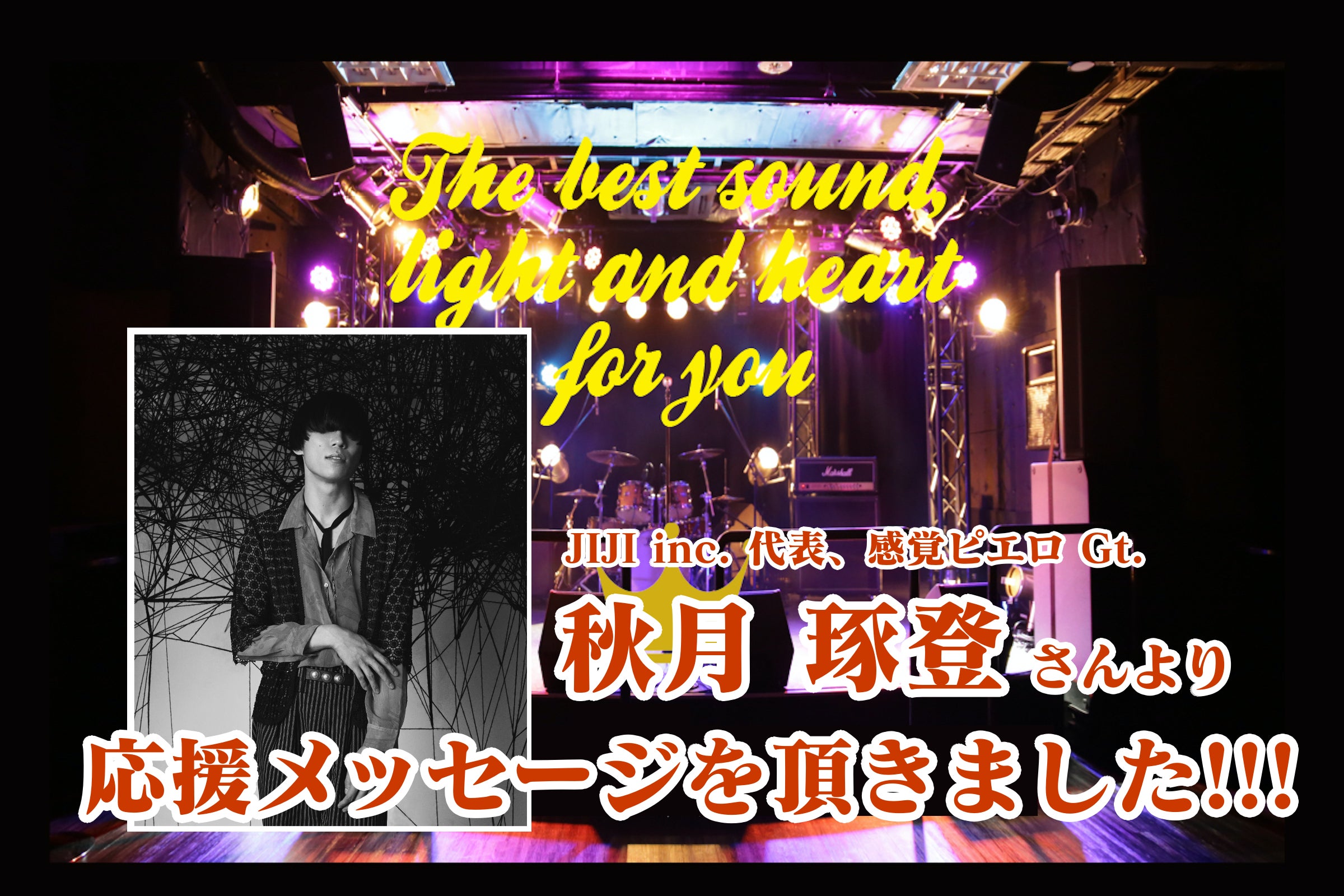 今回のGold Sounds独立とクラウドファンディングに際して、Asakusa Gold Soundsの店長SHUとデスク担当MIKKOが現役当時やっていたバンド、JARRINGの頃から特に深く関わってきたバンドマンであり、JIJI inc. 代表、感覚ピエロ Gt.、 JARRINGの後輩であり大ファン、秋月 琢登さんより、応援メッセージを頂きました!以下、秋月さんからのメッセージです。"JIJI inc. 代表 / 感覚ピエロ Gt. / JARRINGの後輩であり大ファン" の 秋月 琢登さんJARRINGのSHUさん、MIKKO姉さんご無沙汰しております!浅草Gold Soundsのスタッフの皆様、独立支援プロジェクトのこのページを見ている皆様、はじめまして!JARRINGの後輩であり大ファンである、感覚ピエロのギターの秋月と申します。「はじめに・ご挨拶」のところのSHUさんの写真(バックに王冠)、目開いてます?寝てません?挨拶なんやからちゃんと起きてください。笑と、まーこんな冗談も今では言えるくらいにはなりました。昔はここの店長(SHUさん)めちゃくちゃ怖かったんすよ〜、マジで。当時、SHUさんと目が合ったらもう終わりやおもてました。笑そんなJARRINGのSHUさん、そしてMIKKO姉さんには、20歳くらいのクソガキの僕に、音楽のバンドの ‘’真髄’’ と ''お酒の飲み方’’ を、身をもって数えきれんくらい教えて頂きました。今でもART HOUSEで行った企画「真髄」に声をかけていただいて、音楽で真っ向勝負してくださったあの先輩のステージは忘れられません。本当に改めてあのときは、どちゃくそにお世話になりました!!ライブハウスも僕らバンドも何かと向かい風で生きにくいかもっすけど、絶対音楽は死なないし、僕らが帰る場所は無くならんと強く願っています。浅草Gold Soundsの独立、そしてこれからの繁栄を祈って微力ながらですが、僕も応援させていただきます!すべてが落ち着いたそのときには、久しぶりに成長した後輩のステージ姿を目見開いて見守ってください。ふぁいてぃん!JIJI inc. 代表 / 感覚ピエロ Gt. / JARRINGの後輩であり大ファン秋月 琢登-------------------------------------------------------------------------------------------本プロジェクトは、12/20現在、残り10日、達成率58%となっております。達成に向けてお力貸していただける方がいらっしゃいましたら、ご支援、拡散のご協力を何卒、宜しくお願いいたします。Asakusa Gold Sounds