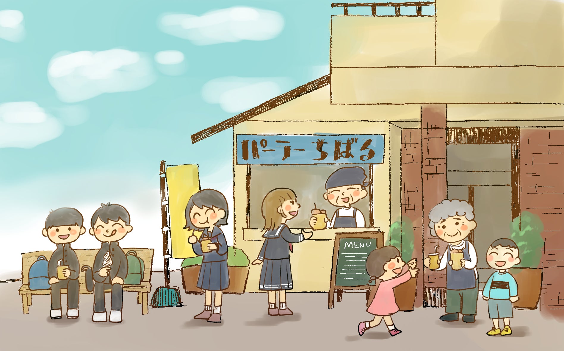 愛知県岡崎市出身の僕が言うのもなんですが、沖縄県では一般的なテイクアウトを中心とした軽食の飲食店です。子供から大人までいろんな人が利用できるまさに多世代が交流する場だと思います
