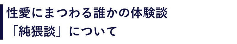 「純猥談」という言葉は、性愛にまつわる体験談の意味合いである「猥談」に、「純文学」にある“純”の文字を付けて出来ました。万人に届かなくとも、誰か一人の心に深く届いて欲しい、という意味合いを込めて名付けています。