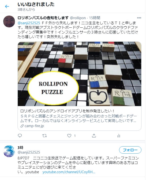 2020/12/03 09:13人気ニコ生主3時さんにロリポン関連のツイートがいいねされました!本当に感謝でいっぱいです!これからも広報活動がんばっていきます! もっと見る