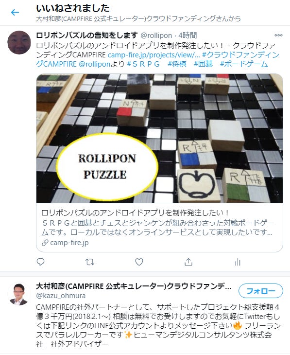 2020/12/03 09:16大村和彦さん(CAMPFIRE 公式キュレーター)にロリポン関連のツイートがいいねされました!本当に感謝でいっぱいです!これからも広報活動がんばっていきます! もっと見る人気ニコ生主3時さんにツイートがいいねされました!