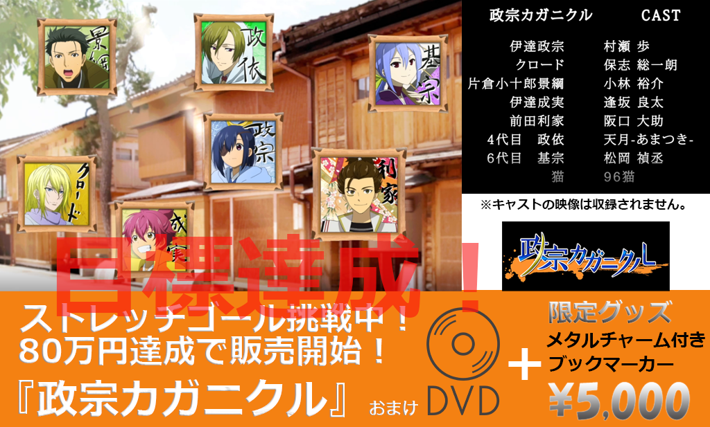 80万円達成!限定メタルチャーム付きブックマーカー&政宗カガニクルおまけDVD(非売品)販売開始!