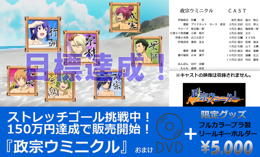 150万円達成!限定プラ製リールキーホルダー&政宗ウミニクルおまけDVD(非売品) 販売開始!