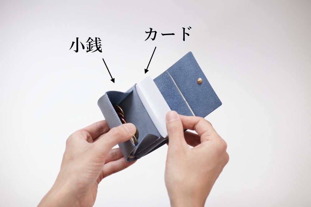 小銭は前側に、カードは後ろに収納します。