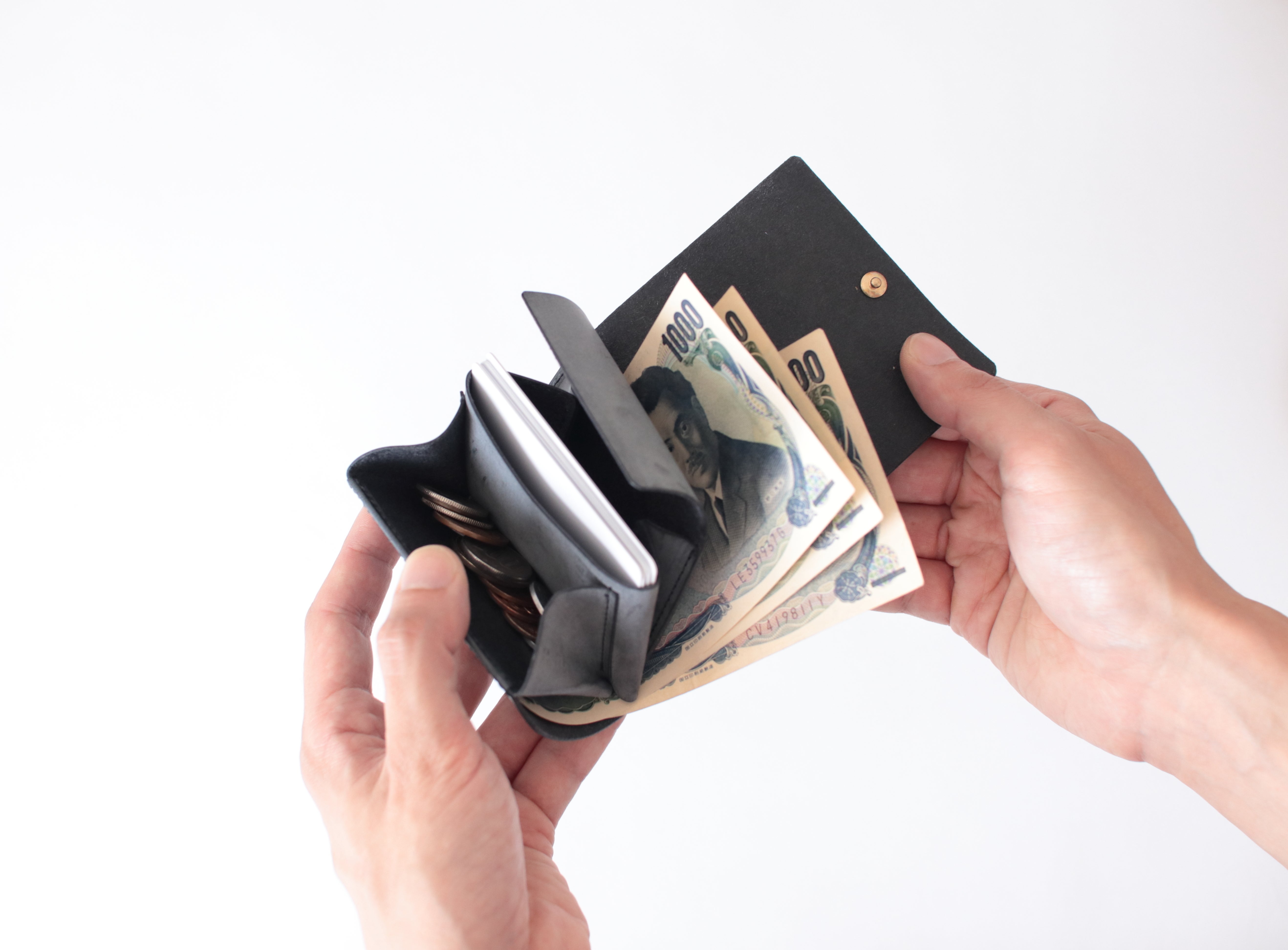 例えばお札を事前に折ったり、三つ折り財布のように広がるから手が小さいと財布自体を持ちづらかったり…。