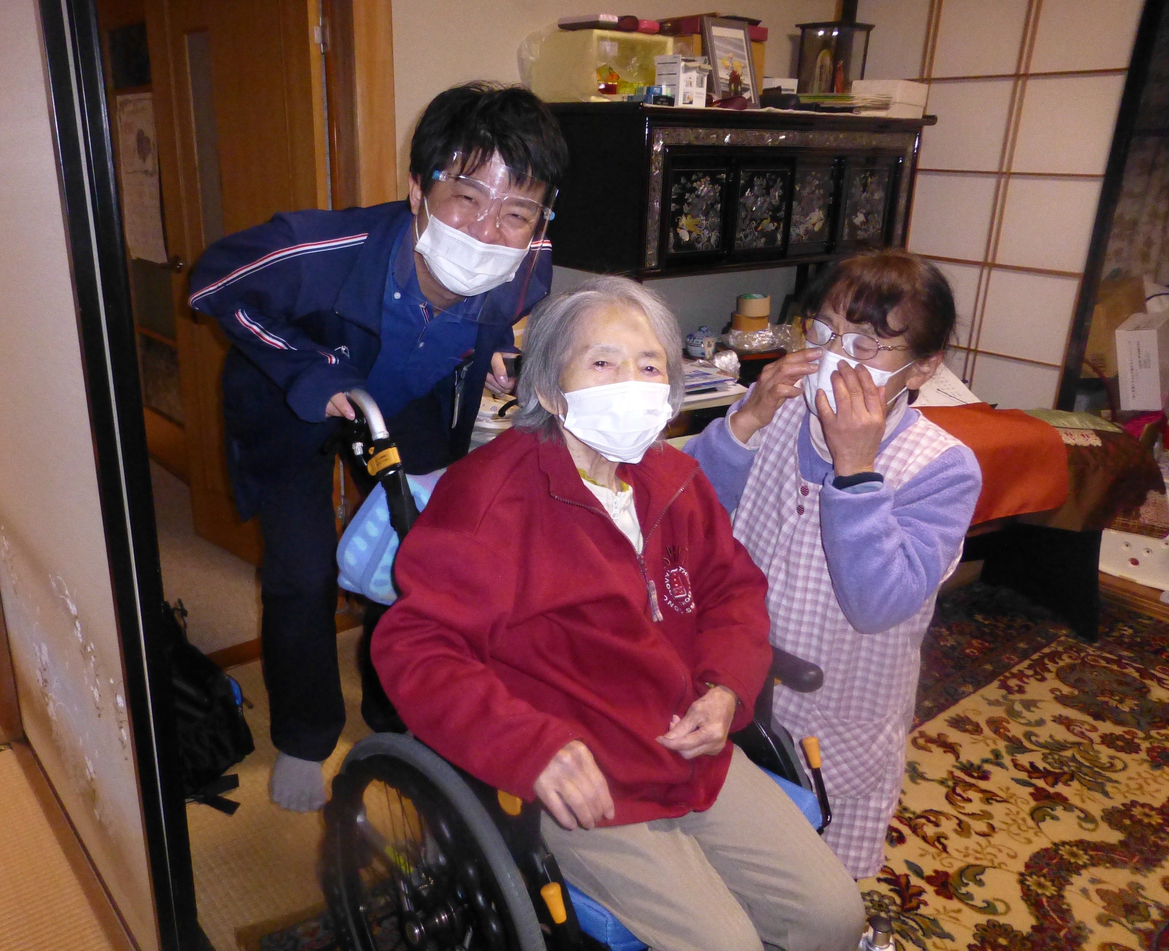 娘さん(埼玉)の依頼で独り暮らしのお母さん(真ん中)を支えております/撮影はご家族様のご了解を得ております