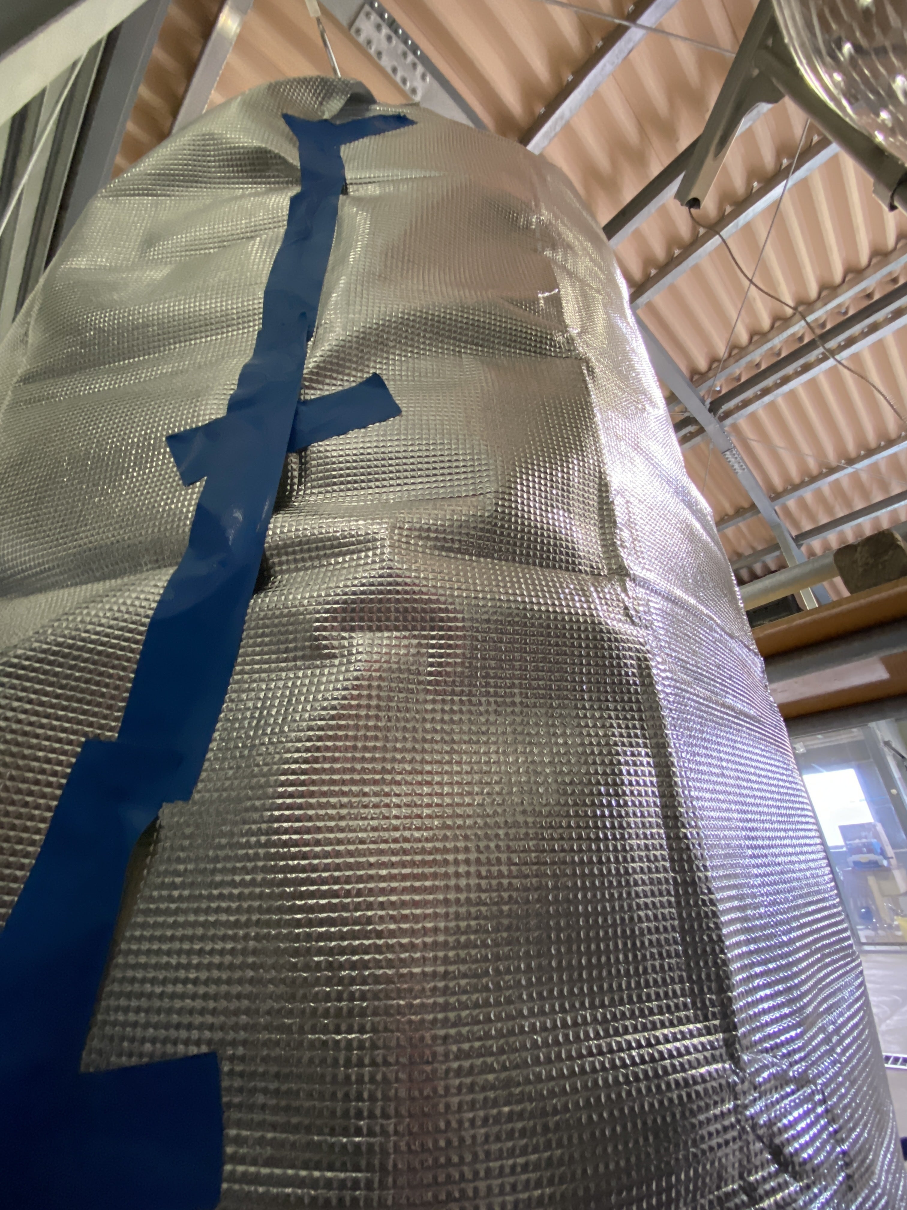 タンクを電気毛布で包み、下からはコタツのアンカも入れて、全体を保温シートでラッピングです。