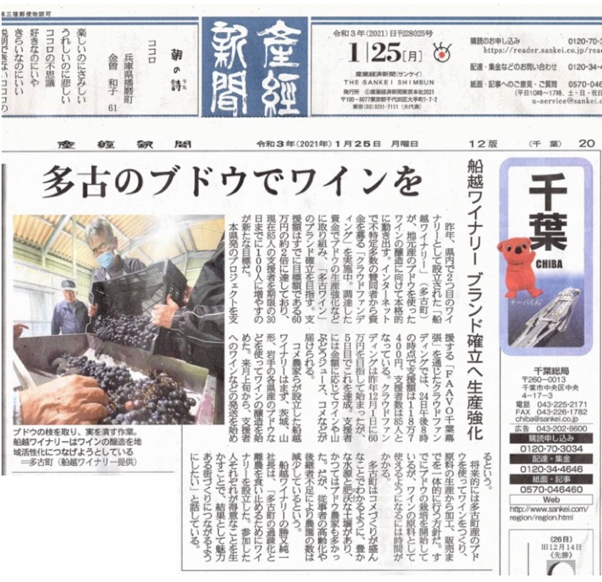 産経新聞 1月25日 朝刊