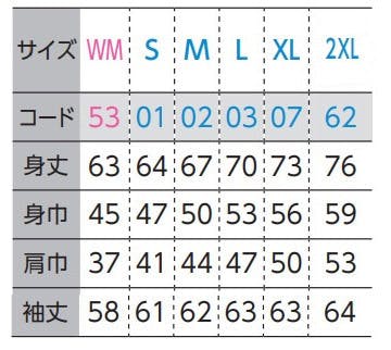 2XL 着丈76 身幅59 肩幅53 袖丈64