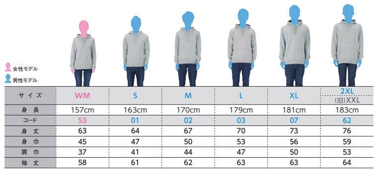 ※レディースサイズ(WM、WL)はネック部の広さやシルエットが女性向きになっています。