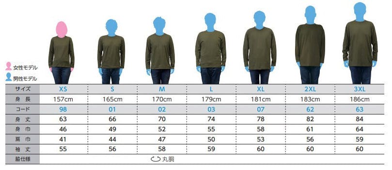 サイズはXSから3XLまでの7サイズからお選びいただけます。