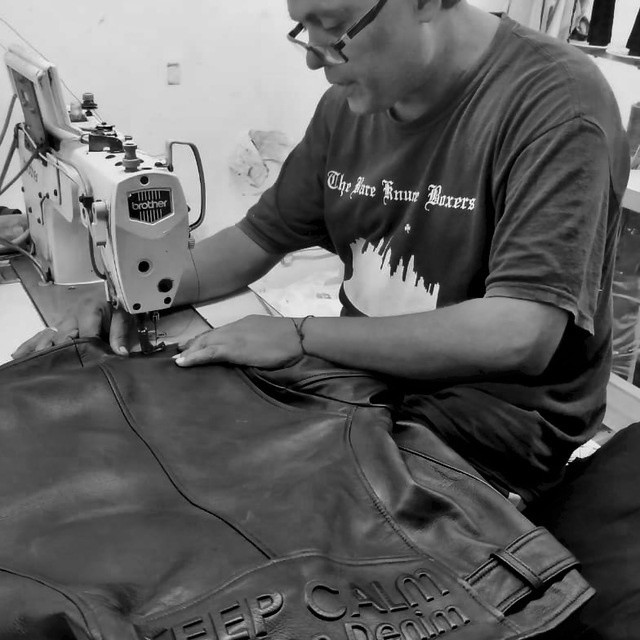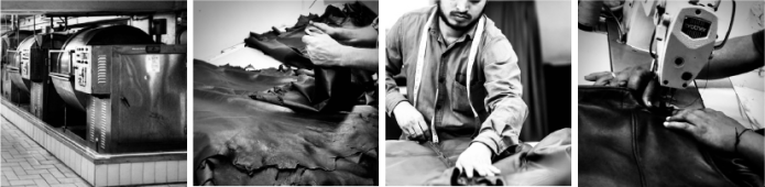 生レザーを受け取るとすぐにStahl社に直接送るので、プロジェクトに必要な美しい革を使用しています。その後乾燥されたレザーは2つの異なるスタイルに切断されます。切断が終わると、熟練した仕立て屋に送る、縫製されます。ボタンやジッパーを含むすべてのトリムと一緒にオリジナル裏地をつけ、ラムレザージャケットが完成致します。