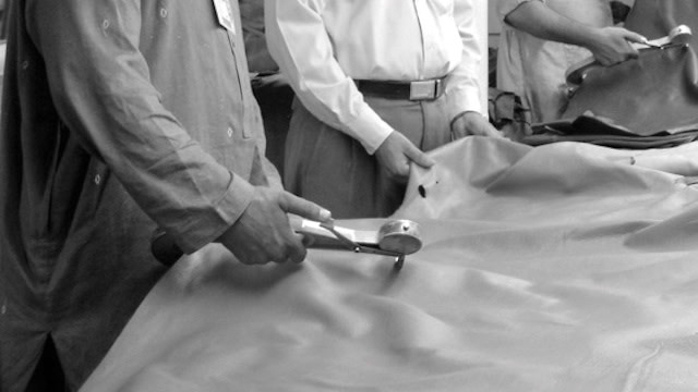 ※切断が終わると、仕立て屋に渡されます。熟練した仕立て屋は、ボタンやジッパーを含むすべてのトリムと一緒にオリジナルの印刷裏地を追加します。