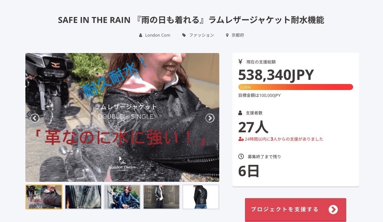 プロジェクト終了まで後6日間です、この「London denim (ロンドンデニム)の約一年をかけ【耐水革】を完成させ、この耐水高級ラムレザーを使ったライダースジャケット」一人でも多くの方にを知って頂きたいと思っております。