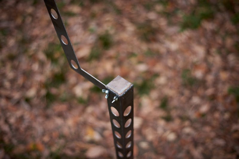 地面に挿す際には、脚の上部を木ハンマーなどで叩きやすいよう面になっており、組み立ても蝶ネジで固定するのみですので、誰でも簡単に組み立てることが可能です。