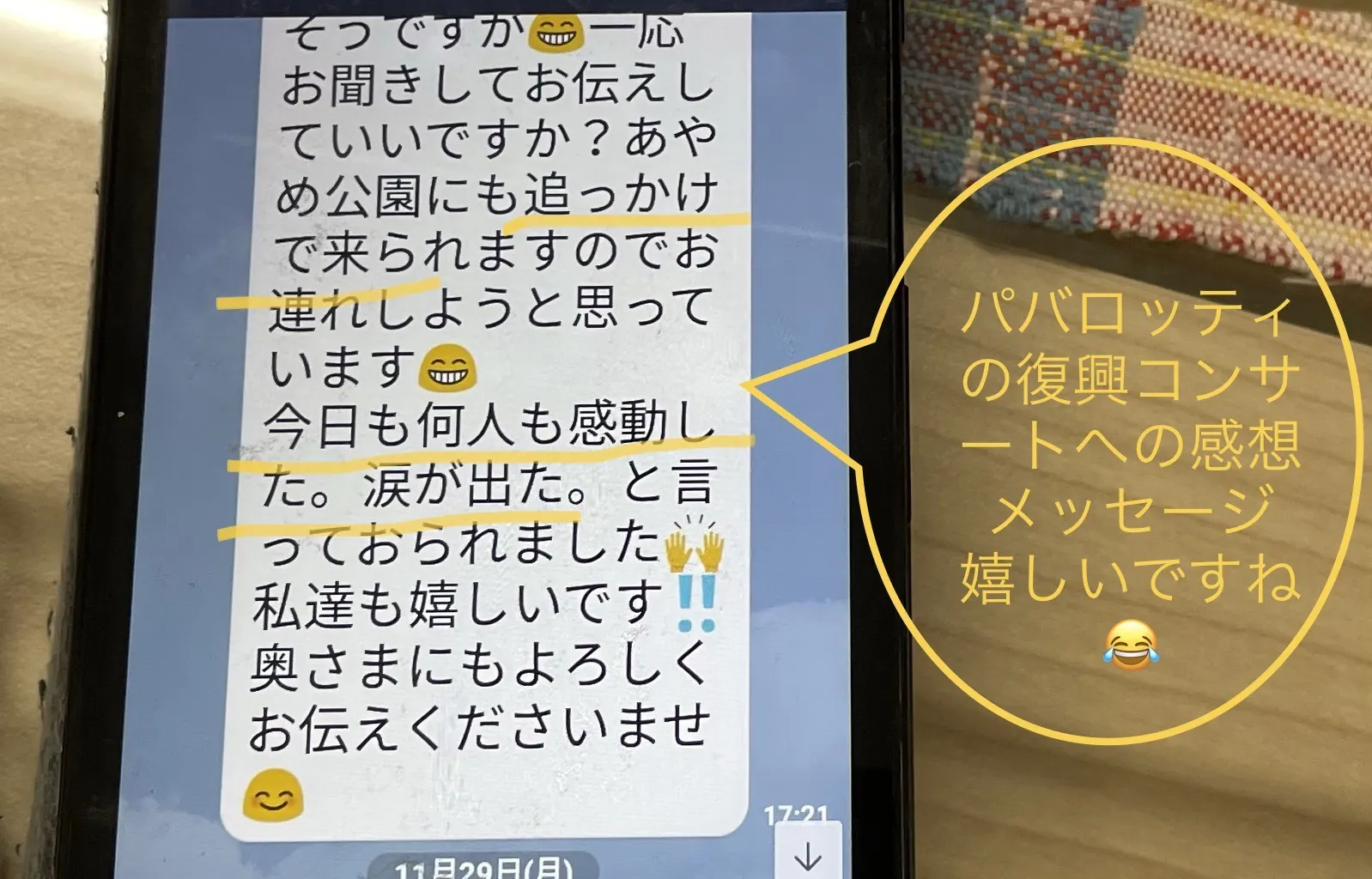 先日は、コンサートに来てくださった仮設住宅の方から、写真のような嬉しいメッセージもいただきました。会場で涙を拭いておられる方もいらっしゃいます。