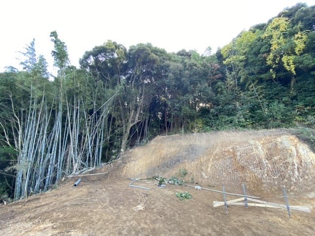 放置された山の木々伐採、それらを侵食する雑草並びに竹林の駆除。土地の整地。