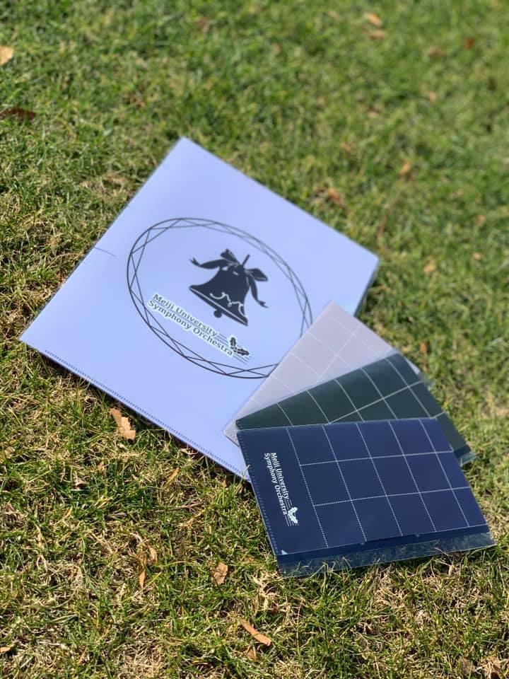 明オケ団員に負担や迷惑が掛からないように配慮しつつ、かつ皆様にささやかながらでもご支援に対するお礼をしたいという思いから、OBOGの有志中心に今回限りの特別ロゴを制作し、そのロゴを印字した特別グッズを準備することにいたしました。