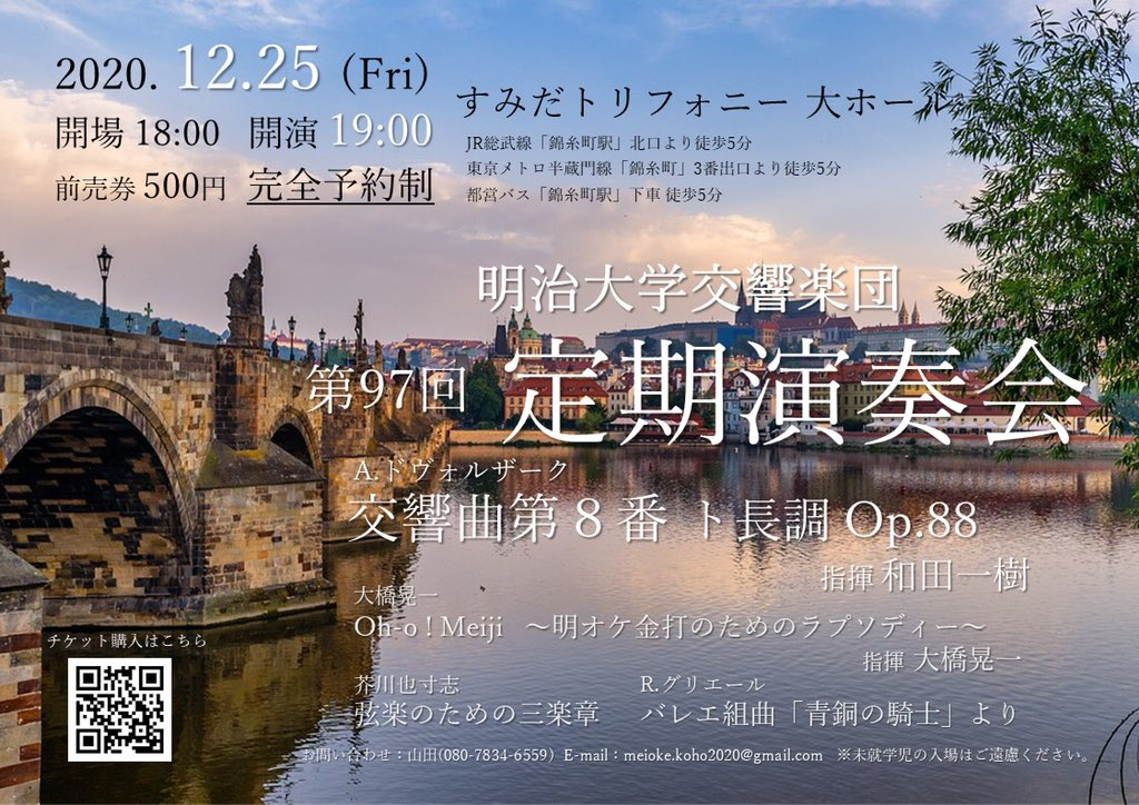 今回、2020年12月25日(金)に開催予定の『明治大学交響楽団 第97回定期演奏会』の開催に際し、皆様にお願いとご協力を賜りたく、クラウドファンディングという形でプロジェクトを立ち上げました。