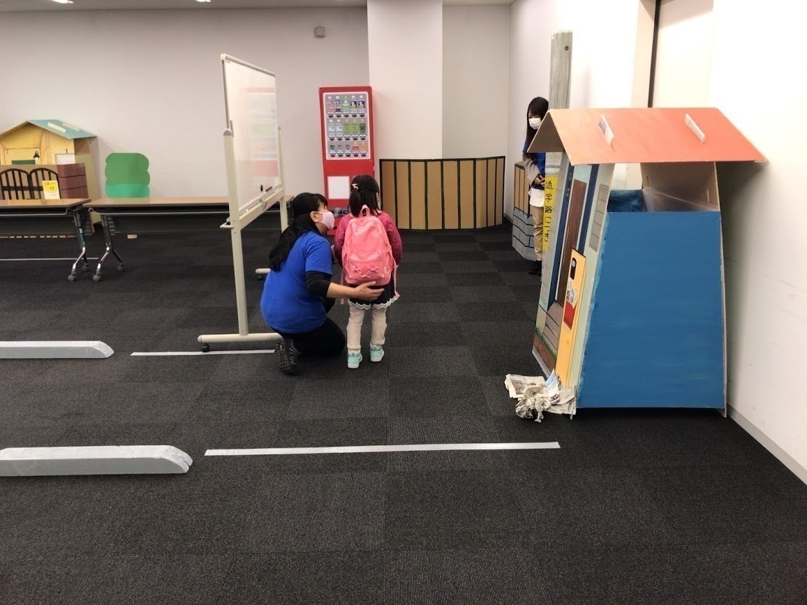 体験できないことを体験する! 自分の力で、通学路上で起こるさまざまな危機を乗り越えよう!室内に作った通学路を通って、無事に家に帰る方法を学習します。
