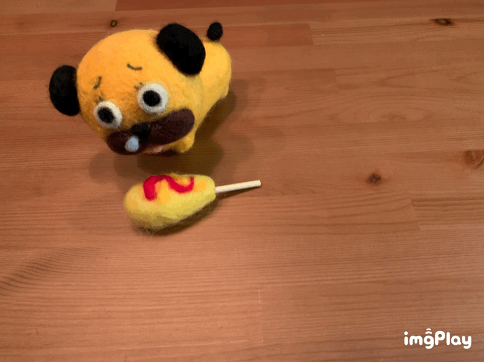 食べようとしても、アメリカンドッグは転がる…♪転がる…♪