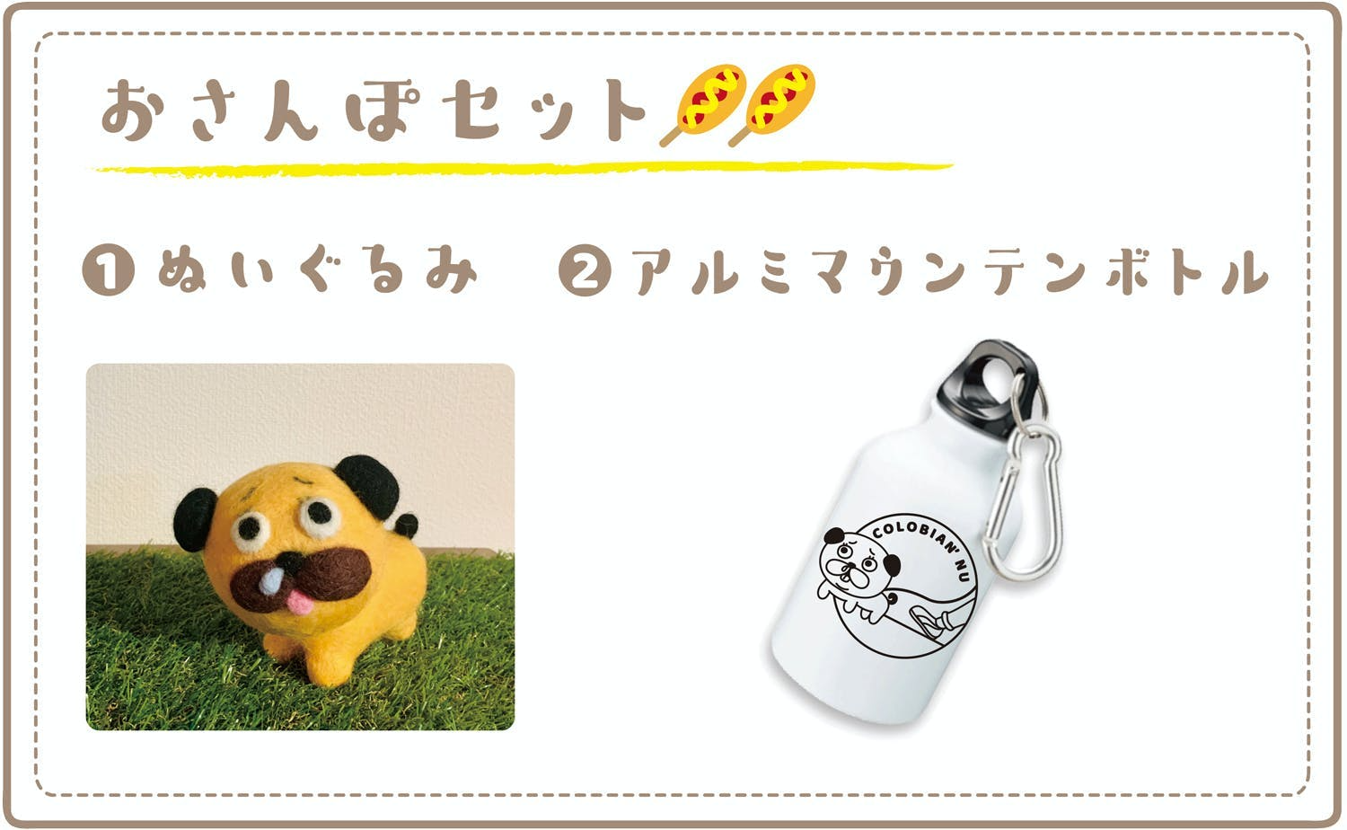 コロビアンヌのオリジナルグッズ3点を付けたスペシャルセット。