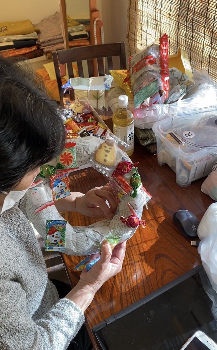 「お孫ちゃんが遊びに来るから」と、作ってます。そりゃ、お子ちゃまも大喜びだろう、このクリスマスリース。