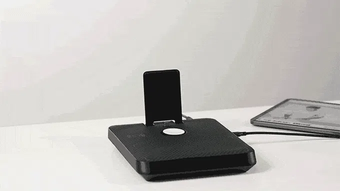 ワイヤレス充電、USB-C、ライトニングのポート、USB-Aを備え、各メーカーの端末を同時に充電。iPhone、Androidデバイス、Apple Watch、AirPods、Samsung ワイヤレスイヤホン、iPad、Mac など全てに対応し、同時にチャージ可能。