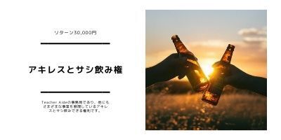 Teacher Aideの事務局であり、他にもさまざまな事業を展開しているアキレスとサシ飲みできる権利です。全国各地飛んでいきます。