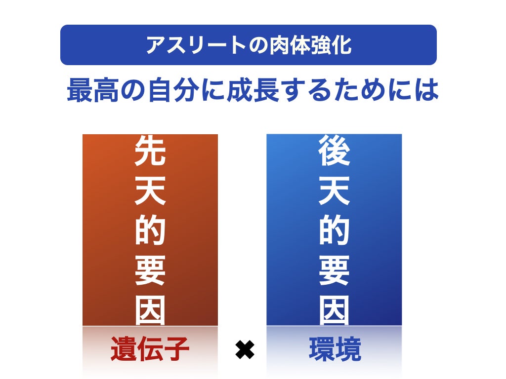 それなのに体の成長、見た目、成果が変わってくるのか考えていくと個々の成長には『遺伝子』が大きく関係していることを知りました。