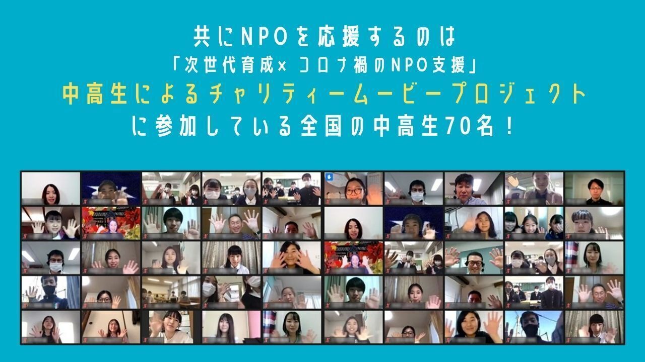 2020年8月より全国各地・海外から70名の中高生が参加し、3カ月かけ、想いを込めた85秒のNPOの応援動画を制作しました。同年11月9日より寄付の呼びかけを行っております。