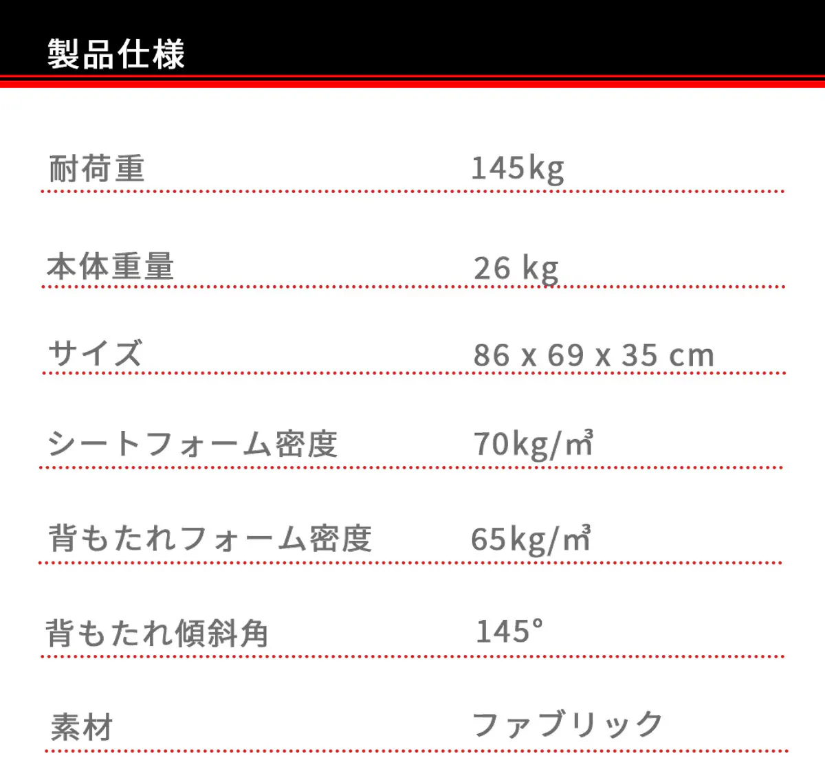 耐荷重は驚きの145kg! 高い耐荷重性能と耐久性には自信あり。立ち上がる際や座る際など、勢いがついても安心な設計となっております。バックレストも広く、肉厚に作られており身体の大きな方や余裕をもって広く使いたい方に快適な商品です。