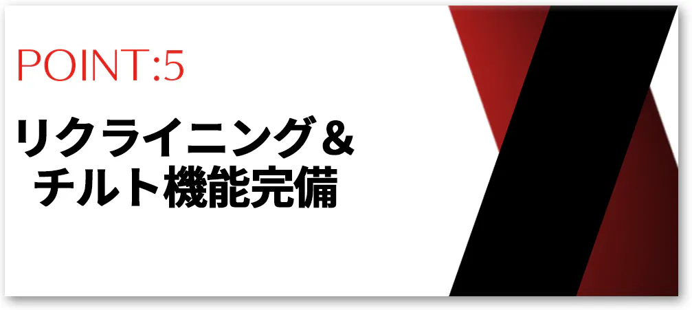 165°までの6段階のリクライニング機能でユーザーのシーンに合わせたご利用が可能となっております。