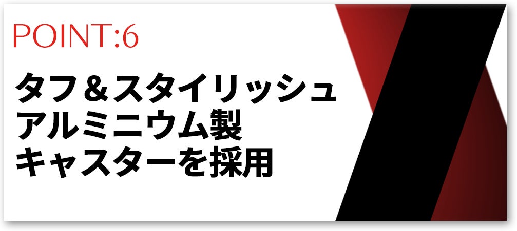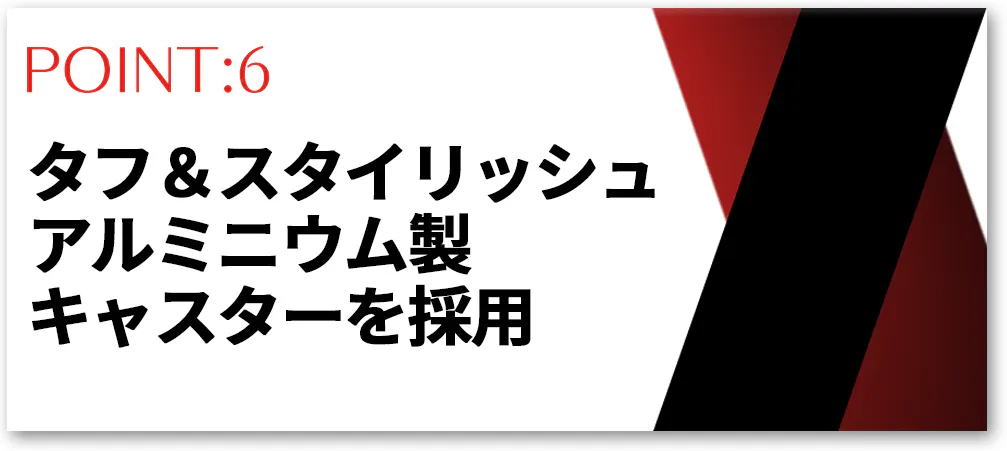 大きく美しいアルミニウム製のキャスターは耐荷重の高さも考えられた、まさに機能美を下支えしてくれる重要なポイントとなっております。