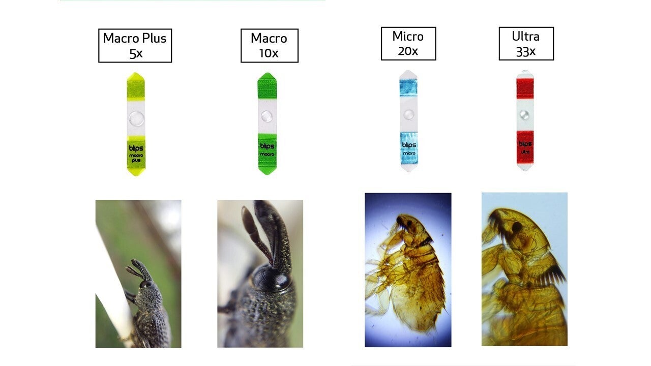 Blips microのレンズは1/20インチ(約1.2mm)未満で、携帯電話を実際のデジタル顕微鏡に変えます。