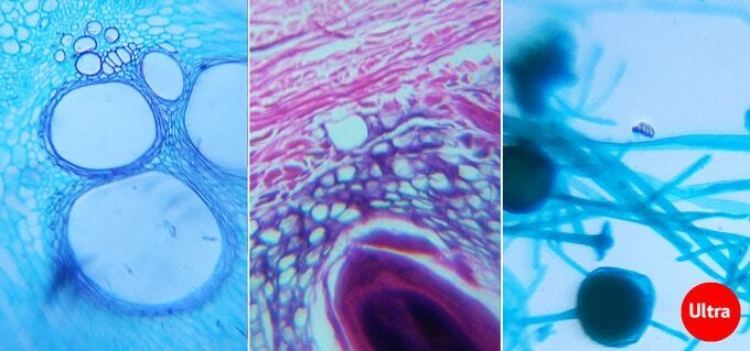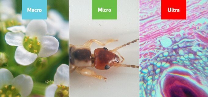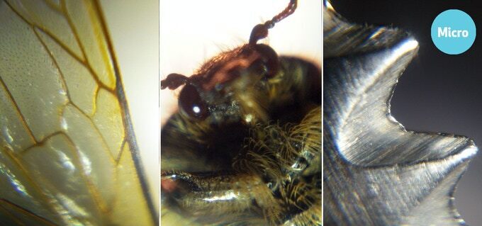 倍率は約33倍を誇り、光学倍率レンズで約3.5ミクロンのミクロ画像(動植物の細胞など小さな物体の細部)を撮ることができます。