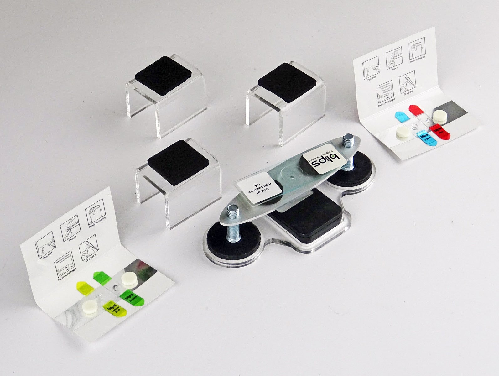New Blips LabKit 2は、スマートフォンをマクロカメラや顕微鏡に変えるための、超ポータブルなセット(4種類のBlipsレンズとスマートフォン用ステージ、ライト)になります。