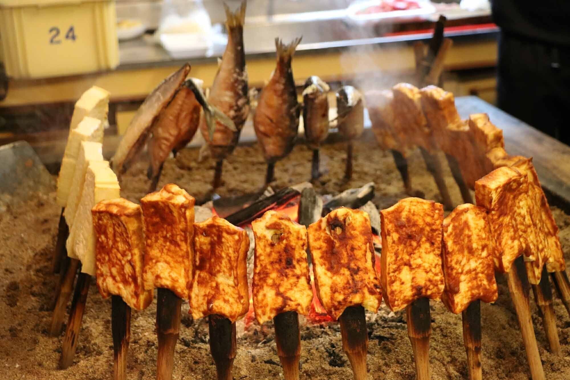 私は普代村に来て、焼き豆腐を使った「豆腐田楽」という郷土食に出会いました。この辺りの豆腐田楽は、ニンニク 味噌を表面に塗った焼き豆腐をさらに炭火で焼いたものです。ピリッと辛いニンニク味噌を豆腐のうま味が和らげ、噛むほどに絶妙な味わいが口の中に広がります。