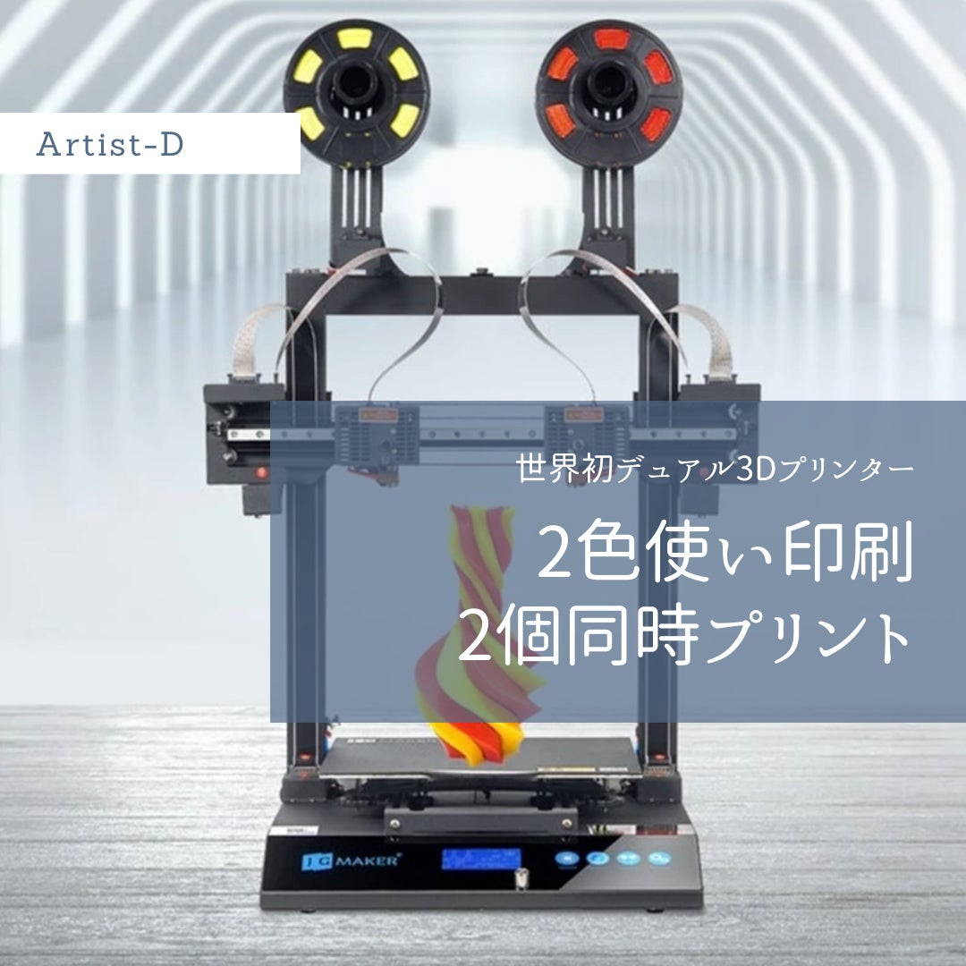 Artist-Dは、独立したデュアルプリントヘッド構造を組み込んだ3Dプリンターです。これにより「2色造形」が可能になり、創造性を高め、今まで不可能だった独自の形態を想像することが可能になりました。また、同じモデルを同時に作成する「同時造形」も可能になり、印刷時間が短縮され、より快適な印刷を楽しめるようになりました。