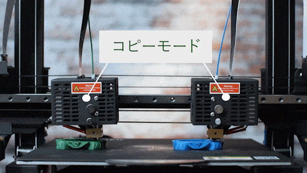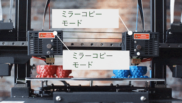 コピーモードと違い、2つのうち1つの造形データを鏡映しに造形できます。