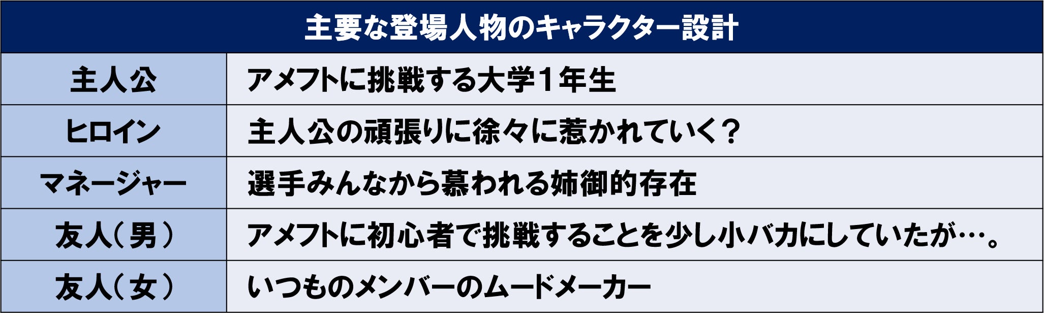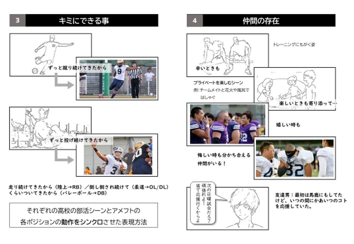 アメリカンフットボールに今まで関わりがなかった新入生にもリーチできるように主人公には有名俳優をキャスティングしアメフトに挑戦する大学生像やキャンパスライフを描きつつ、他の出演者においてもSNSにおいて影響力のある人物の起用を考えております。