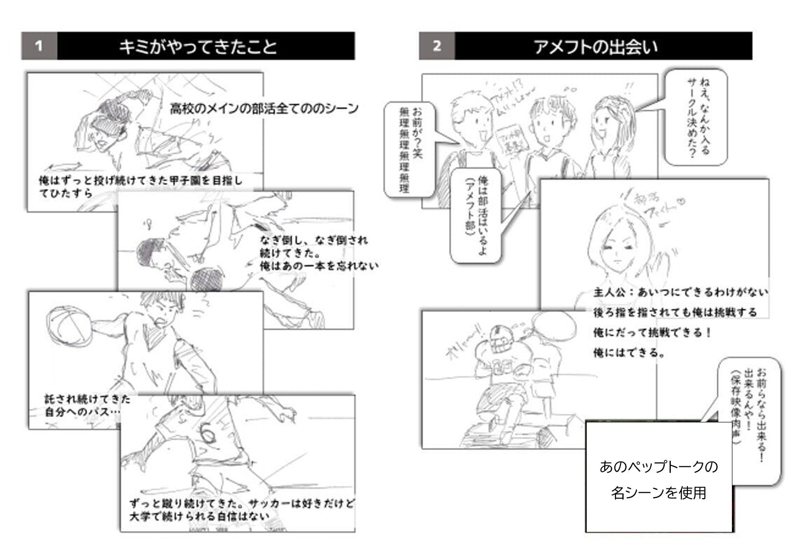 この先、就職活動のシーンや、今尚、仕事とフットボールの両立をしているXリーグの現役選手たちの姿、肉声へと続きます。そして、一生涯、フットボーラーの誇りを持ち、謙虚に学び、挑戦し続け、社会で活躍するイメージにつなげて欲しいと思います。