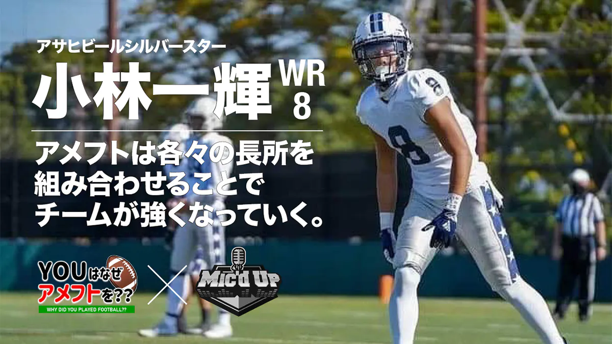 小林選手は小学6年生からフットボールを始め、競技歴は16年。強豪立命館大学パンサーズからアサヒビールシルバースターに進み、得点源として活躍が光ります。