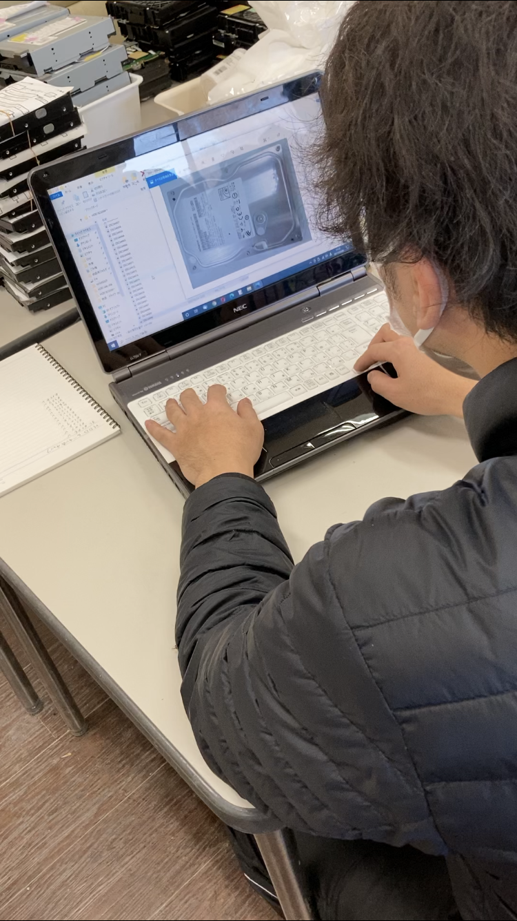 写真を撮った画像のチェックをしています。チェックは誰でもできる仕事ではありません。責任も重大です。