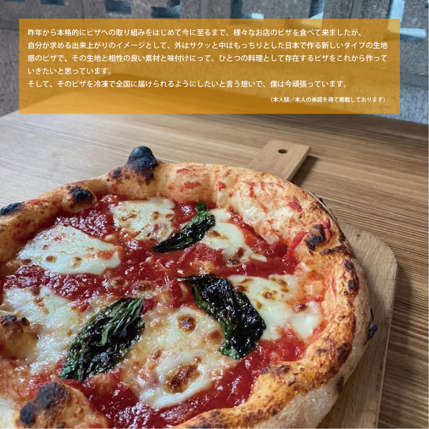 今の僕たちに出来ることは、彼が作る「冷凍PIZZA」をお届けすることだけです。