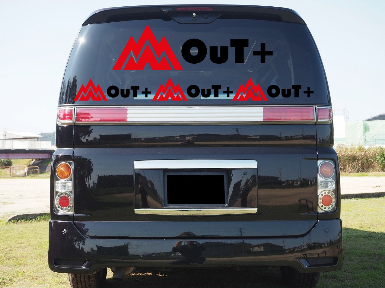 ⑤\100,000のご支援で弊社デモカーへお名前(大サイズ)とロゴ(大サイズ)のステッカーを作成・貼り付け致します。